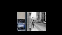 The work’s time-based nature facilitates such moments. In a short series of split-screen shots, for example, the moving-image half, a Brussels street scene from the 2010s vacates the frame together with a pedestrian who walks out of it, ceding its place to a full-frame black-and-white still of a1970s New York street. Thus begins the sequence of twenty-three black-and-white stills, which, unified in their urban focus and formal consistency, document slices of the modern world on the move through time. The locations shown in the photographs and the dates they were taken are fairly easy to guess from the automobiles, architecture, and clothing on view. The details are richly informative.