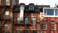 THE DRESS is a projection prop created for a performance piece at the Art Institute in 1984. It was installed in March 2021, suspended in front of a building on the Bowery as both a memorial to my grandmother, a Hungarian immigrant and master seamstress, and to the Triangle Shirtwaist Factory fire of 1911, which occurred a few blocks north of this site. (EJay Sims)